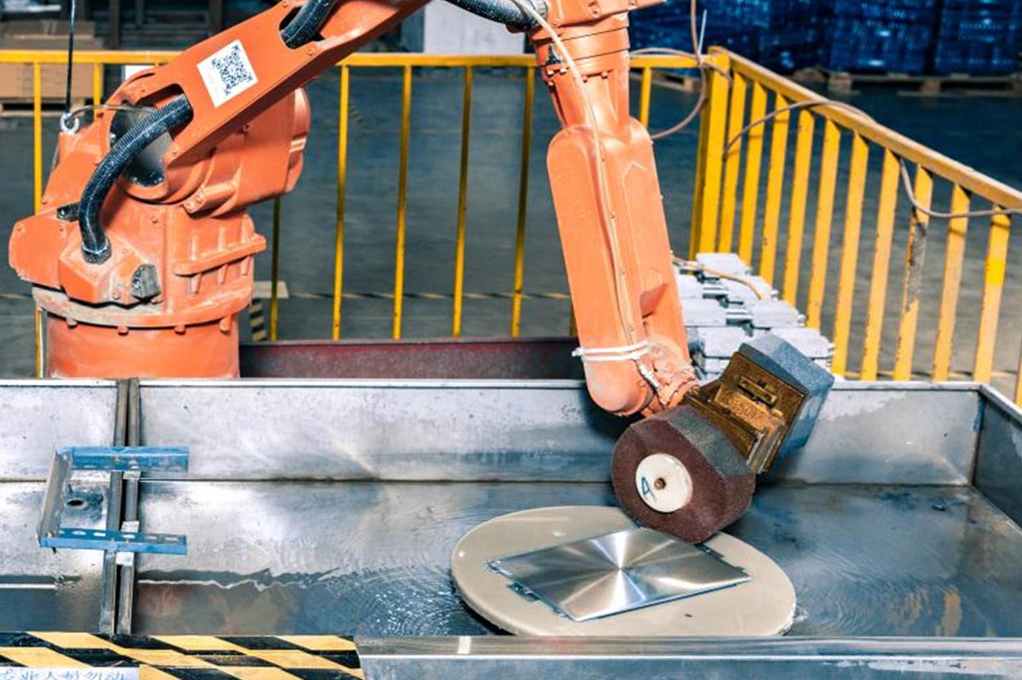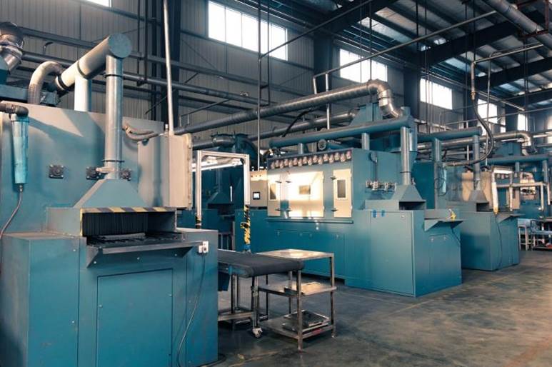 公司內擁有4條ABB機械手打磨線,2條五軸拋光打磨線,2條手動打磨線,2條自動清洗線,4條噴砂線,每天的綜合產量達到2萬件。
