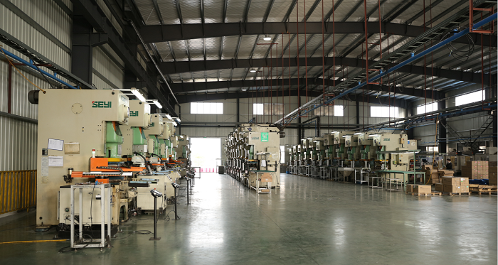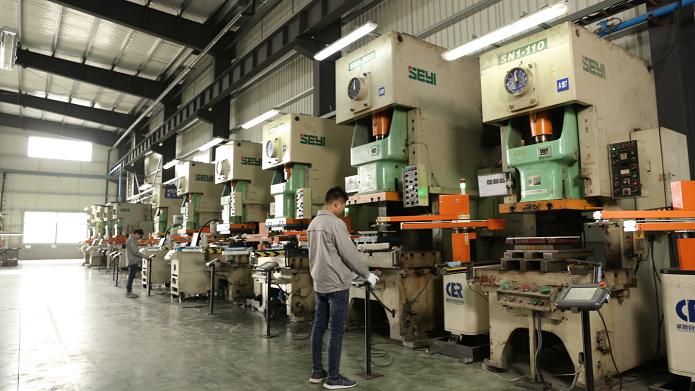 目前公司擁有13條沖壓線,每天的綜合產量能達到3萬件,其中有四條自動線,自動線每班產量5000,